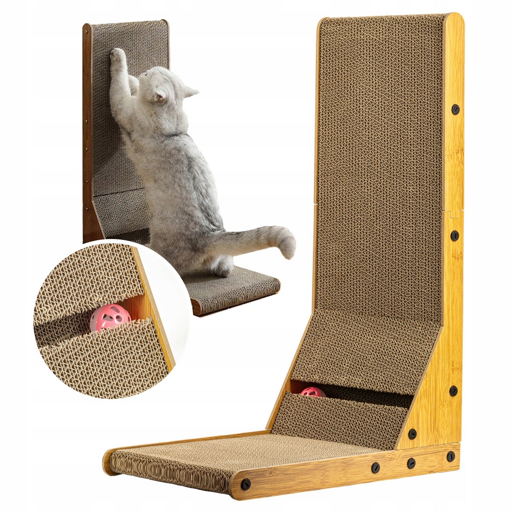Kartónový CAT SCRATCRATOR, veľký, s loptou, STOJÍCI PRI STENE, drevený, 60x40